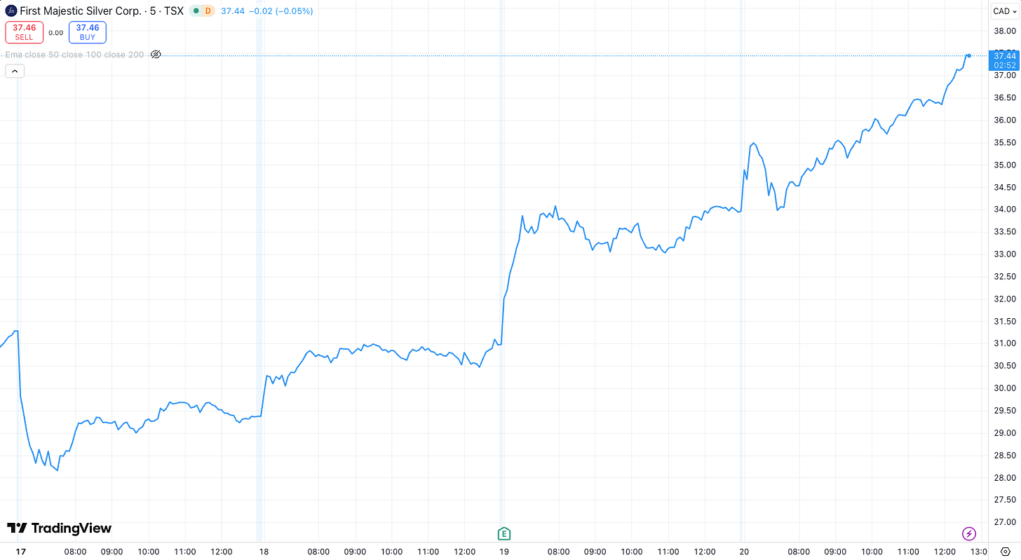 First Majestic Silver exploded this week, surging about 21% from Tuesday’s open and rallying 29% off Tuesday’s low. While silver itself is up over 9% on the week, First Majestic’s move was amplified by a blowout Q4 2025 earnings report and a major dividend hike.