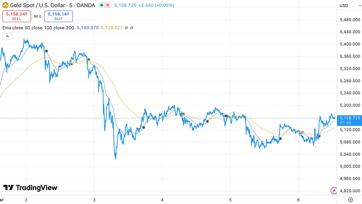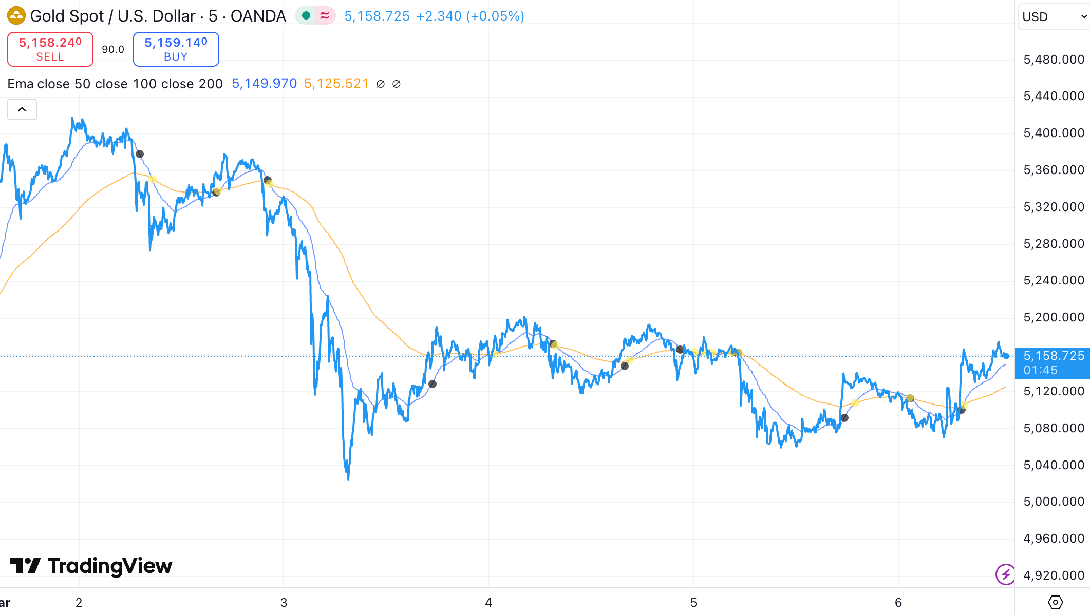 Gold came into the week around $5,408 but sold off hard, with spot gold dropping roughly $177 in a single session by March 3. The pullback was driven by a combination of profit taking after hitting record highs, a stronger U.S. dollar, and a technical correction after prices had pushed above $5,300. Essentially, the metal ran too far too fast and got hit by sellers cashing out.