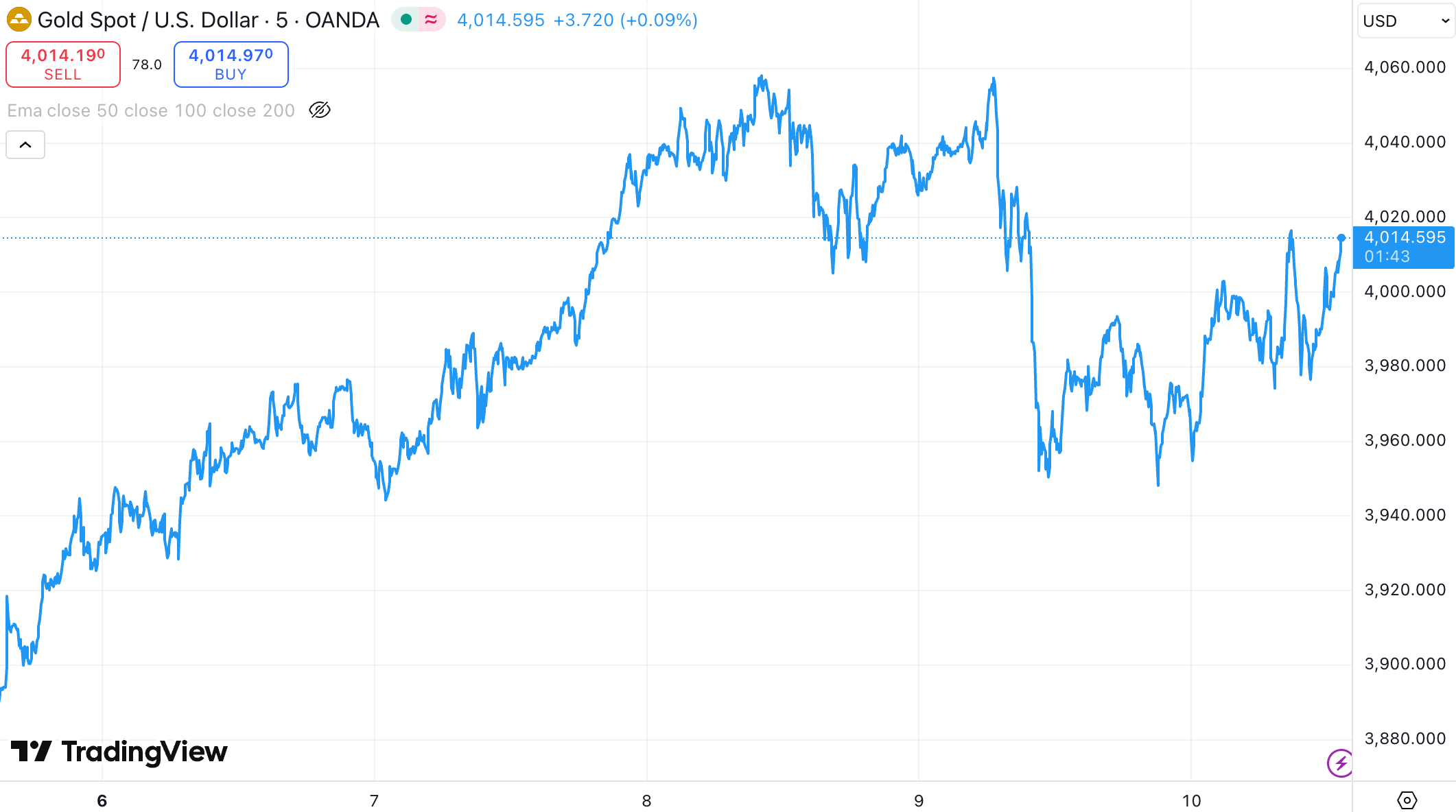 Gold surged above $4000 per ounce this week, fueled by safe-haven demand amid the U.S. government shutdown and record central bank purchases. Turkey added 17 tonnes, India added 14 tonnes, and China continued its nine-month buying streak. ETF inflows hit roughly 9-10 billion dollars in September alone, which was the largest monthly inflow on record. Meanwhile, speculation around Federal Reserve rate cuts and a weaker dollar added fuel to the rally. Prices retreated slightly as profit-taking emerged, following the rapid rally driven by both institutional buyers and algorithmic traders.